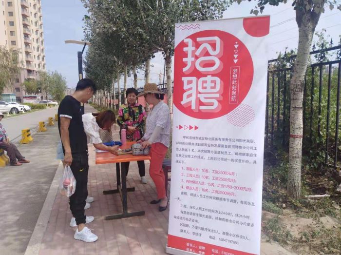 7月10日、11日、19日,物業(yè)公司聯(lián)合內蒙古眾信人力資源服務(wù)有限責任公司赴市勞動(dòng)人才市場(chǎng)及在管的陽(yáng)光美居小區、祥和苑小區,招聘高素質(zhì)的勞務(wù)派遣專(zhuān)業(yè)技能人才和一線(xiàn)員工,并建立了人才儲備庫。