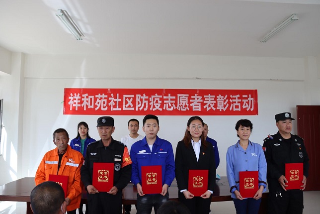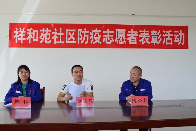 5月15日上午,小黑河鎮祥和苑社區黨支部開(kāi)展表彰防疫志愿者活動(dòng)。城發(fā)物業(yè)公司黨支部書(shū)記娜仁應邀參加此次活動(dòng)。