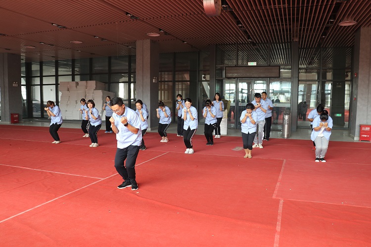 上午10:00第九套廣播體操的音樂(lè )準時(shí)在一樓大廳響起,領(lǐng)操員王龍帶領(lǐng)全體職工就位,首先整理隊形,接著(zhù)帶領(lǐng)大家從伸展運動(dòng)開(kāi)始在積極昂揚的音樂(lè )中聯(lián)系廣播體操,全體員工積極參與,認真練習整個(gè)大廳充滿(mǎn)了活力、健康的氛圍,一天的高效工作由此開(kāi)啟。