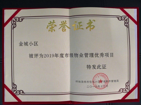 9月29日,城發(fā)物業(yè)金城小區項目被呼和浩特市住宅小區環(huán)境秩序管理局評為物業(yè)管理2019年度市級優(yōu)秀項目。