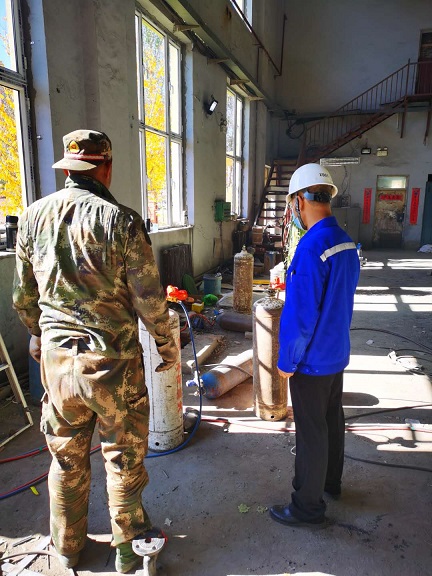 檢查未發(fā)現重大安全隱患。但檢查中發(fā)現,供熱管網(wǎng)互聯(lián)互通工程施工現場(chǎng)所用氣瓶未按要求放置,東河苑小區換熱站施工人員未戴安全帽及違規用電,四醫院燃氣鍋爐房施工所用乙炔、氧氣瓶安全距離不夠及施工人員未戴安全帽等安全隱患。劉堅在現場(chǎng)責令施工單位和人員按照要求進(jìn)行整改,并下發(fā)整改通知,確保施工安全,杜絕安全隱患。