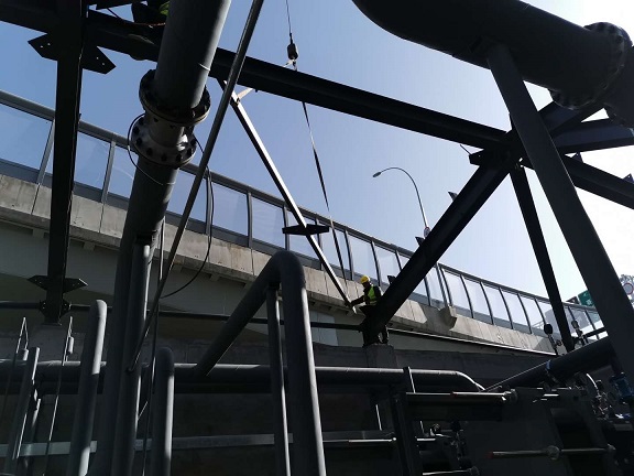 在檢查內蒙古高路公司新建熱力站安裝屋頂鋼結構及屋面彩鋼板項目時(shí)發(fā)現施工人員在高空作業(yè)雖然佩戴了安全帶、安全帽,但未按要求懸掛安全表示;檢查人員要求施工負責人立即按照安全帶使用規范進(jìn)行整改,并責令安全質(zhì)檢處跟進(jìn)整改的情況。