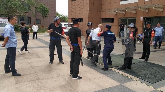 上午10:00演練正式開(kāi)始,此次演練活動(dòng)設置出現暴力襲擊的場(chǎng)景,進(jìn)行模擬報警、人員疏散、器材使用、制服暴徒、等待公安救援、事后報告流程等場(chǎng)景。演練過(guò)程中,參演人員嚴格按照預案流程分工,模擬在小區進(jìn)門(mén)登記測溫過(guò)程中,有一名人員拒不配合例行工作,并持刀傷害安保人員。安保人員迅速反應、密切配合,立即報警并使用防暴器材控制嫌疑人,將居民緊急疏散至安全區,外圍保安接警后及時(shí)趕赴現場(chǎng)進(jìn)行處置。演練完畢,安保公司相關(guān)負責人現場(chǎng)指導反恐器材的使用和發(fā)生此類(lèi)突發(fā)事件的處理方法。