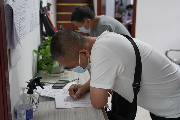 "請填寫(xiě)一下臨停申請表,請,慢走!"工作人員有條不紊的接待用戶(hù),不時(shí)為用戶(hù)解答著(zhù)問(wèn)題。
