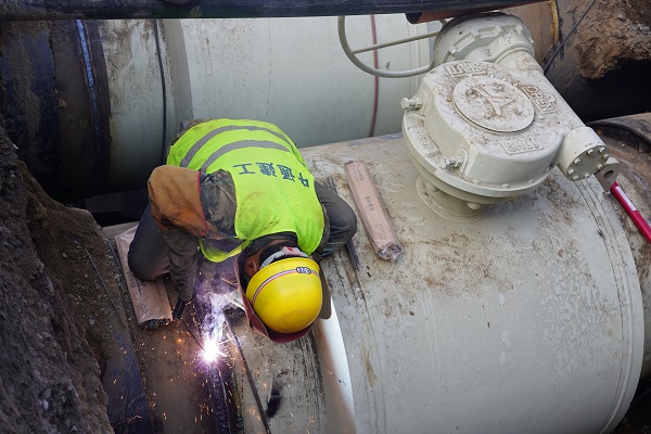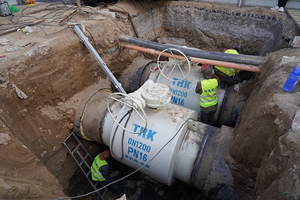 在金橋路一次管網(wǎng)改造施工現場(chǎng),筆者看到DN1200主管線(xiàn)的球閥焊接工作已接近尾聲。據介紹,之后將陸續進(jìn)行探傷、保溫、閥門(mén)井砌筑等工程。該處工程是在主管網(wǎng)加裝管道閥門(mén),起到對主線(xiàn)關(guān)斷的作用,在冬季供暖期遇到突發(fā)事件可避免造成大面積停供,有效保障金橋區域今冬的正常供暖,預計9月中旬完工。