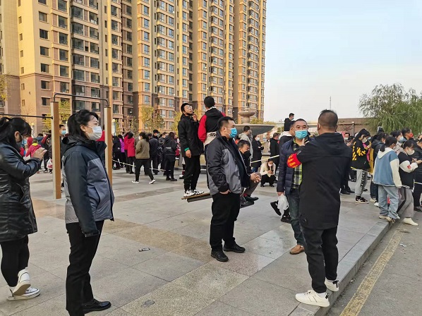 一行人還與小區居民進(jìn)行了交流,小區居民表示,在物業(yè)工作人員的安排下核算檢測迅速有序,大家都愿意積極配合小區防疫工作。