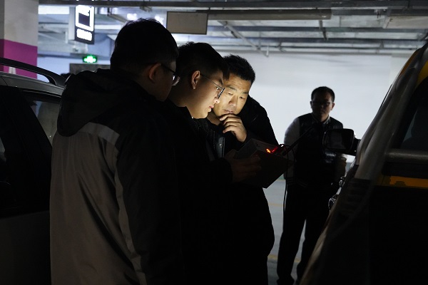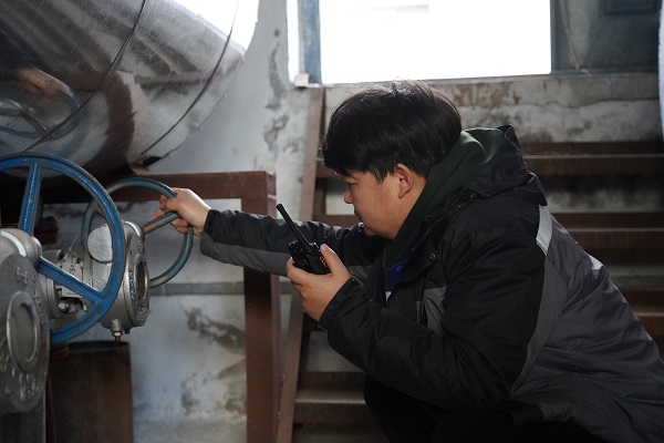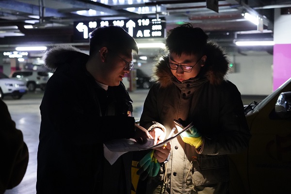 11月12日上午,在巨海城八區6號居民樓副一層,城發(fā)橋靠分公司第六運營(yíng)所的員工們正在進(jìn)行低區二次網(wǎng)主管道的流量測量工作。
