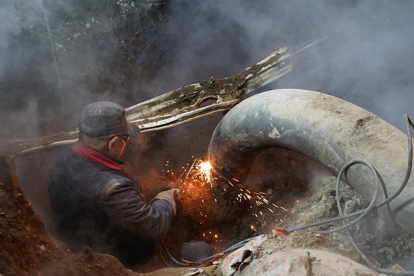 "找到啦!"隨著(zhù)一聲驚呼,一條約20公分長(cháng)的裂口,赫然出現在人們面前。雖然當時(shí)已經(jīng)是晚上8點(diǎn)多,室外的氣溫也在持續下降,為了盡快恢復供熱,大家沒(méi)有休息,馬不停蹄的開(kāi)始了緊張的堵漏工作。經(jīng)過(guò)一夜的奮戰,終于在23日早6點(diǎn)半結束搶修,開(kāi)始注水。在停暖15個(gè)小時(shí)后,恢復正常供熱,確保了62萬(wàn)平米內的熱用戶(hù)家中溫度及時(shí)上升。