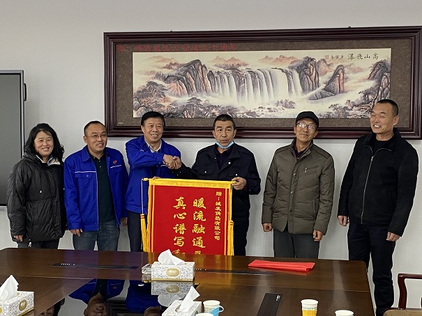 11月29日,西黑河村村長(cháng)胡滿(mǎn)貴一行四人來(lái)到市城市燃熱集團公司將一面寫(xiě)著(zhù)"暖流融通西黑河真心譜寫(xiě)和諧曲"的錦旗贈送呼市城發(fā)供熱公司,對城發(fā)供熱公司用心盡力,精心施工,保障供暖,傾情服務(wù)表達了誠摯的謝意!集團公司總工程師胡月在鄭重地接過(guò)這份來(lái)自村民的認可。