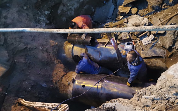 此次搶修采用DN800管道做"袖套"進(jìn)行管道焊接修復,為整個(gè)搶修爭取了近1天的時(shí)間,最大程度保障了轄區熱用戶(hù)的供暖,為百姓的冬天筑起了一道最有力、最堅固的溫暖防線(xiàn)。