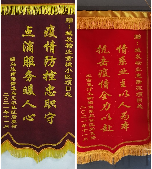 2021年城發(fā)物業(yè)公司年度取得了可喜成績(jì),2021年被呼和浩特市物業(yè)管理協(xié)會(huì )評為2021年度先進(jìn)單位、管理的金城小區項目被呼和浩特市物業(yè)管理協(xié)會(huì )評為2021年度呼和浩特市物業(yè)管理示范項目,史濤、郝曉東、范宇昆、董美麗四名同志被呼和浩特市物業(yè)管理協(xié)會(huì )評為2021年"抗議勇士"與"最美物業(yè)人","金城小區"、"陽(yáng)光美居"、"惠新苑"項目處分別被賽罕區烏尼爾社區居委會(huì )、富力社區、新城區東苑社區居委會(huì )贈送"疫情防控忠值守,點(diǎn)滴服務(wù)暖人心"錦旗和榮譽(yù)證書(shū)。