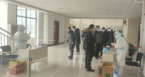 2月17日下午1點(diǎn),惱包園區全員核酸檢測正在緊張有序的進(jìn)行中,為做到不聚集扎堆,將檢測點(diǎn)設置在信息大廳門(mén)外,以確保通風(fēng)。依次劃分為4個(gè)區域,各區域都張貼了引導標識,放置了人流隔離設施,分時(shí)段依次檢測。