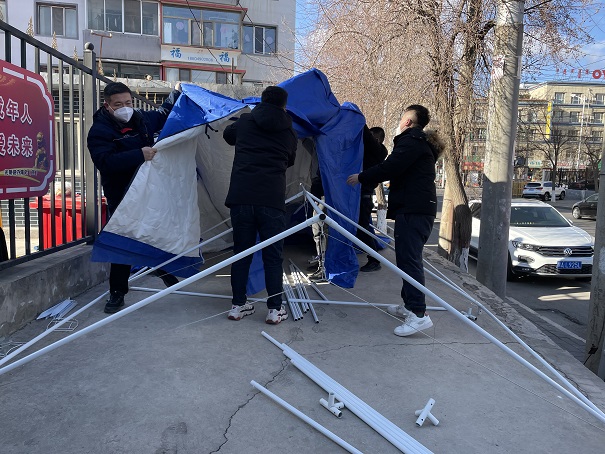 連日來(lái),公司的近百名員工陸續被派往社區一線(xiàn)支援疫情防控工作,事務(wù)管理中心安排專(zhuān)人和他們保持聯(lián)系,及時(shí)把一次性醫用外科口罩、N95口罩、防護服、防護手套、隔離面罩等疫情防控物資送到各個(gè)值守點(diǎn)。2月28日,事務(wù)管理中心主任胡夢(mèng)園、黨支部書(shū)記劉紅梅在電子路社區值守點(diǎn)查看時(shí),發(fā)現當班的員工在寒風(fēng)中堅守著(zhù),及時(shí)為他們搭建了帳篷,送來(lái)了電暖氣。