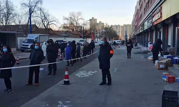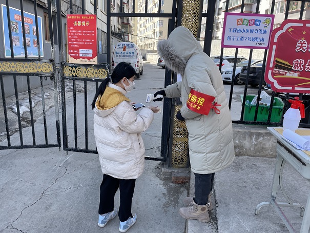 "沒(méi)事兒,天氣冷我堅持堅持就過(guò)去了,只希望疫情能快點(diǎn)兒結束。"2月28日下午,筆者在電子廠(chǎng)小區北口見(jiàn)到了正在寒風(fēng)中執勤的新華東街分公司員工高晶晶。交談中筆者了解到,她每班要在這里堅守六個(gè)小時(shí),沒(méi)有帳篷、也沒(méi)有取暖設備,看著(zhù)她凍紅的雙手,聽(tīng)著(zhù)她沙啞的聲音,筆者叮囑她要多喝水,高晶晶說(shuō):"我這里離衛生間還有一段距離,所以我盡量不喝水,以免漏檢一人。"