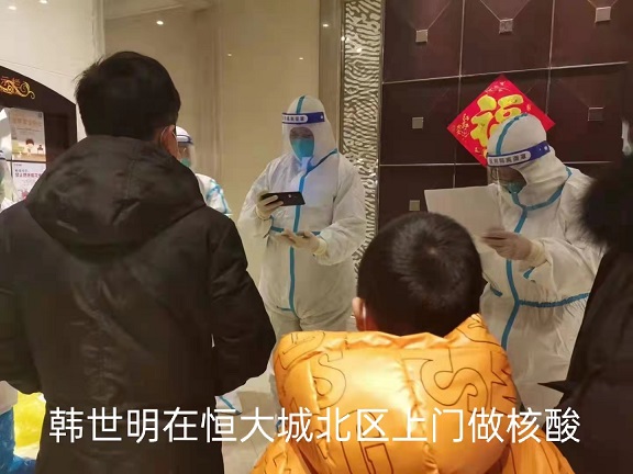 韓世明所居住的小區是出現確診病例比較早的小區,社區第一時(shí)間對小區進(jìn)行了封控。當聽(tīng)到消息的第一時(shí)間,韓世明便向公司報備,然后配合社區進(jìn)行核酸檢測,當他知道社區缺少人手,而他核酸檢測是陰性后,毅然決然的到社區報道參加志愿者。由于是高風(fēng)險小區,他們的工作量比其他地方要大的很多,早上五六點(diǎn)就開(kāi)始做準備工作,有時(shí)候甚至凌晨還在工作,看到他的朋友圈志愿者忙碌的身影,嚴格有序的入戶(hù)排查,一遍又一遍的清理消毒,很好的詮釋了什么是默默無(wú)聞,無(wú)私奉獻。
