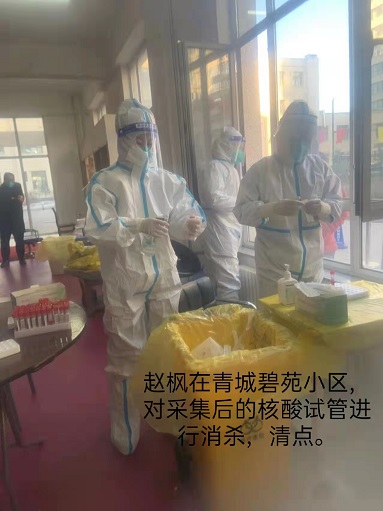 趙楓的工作是對核酸采集好的試管進(jìn)行消毒處理然后清點(diǎn),她所在小區居民大概900多人,每天的工作量不僅大,而且需要非常細心。剛開(kāi)始的時(shí)候志愿者輪換崗位進(jìn)行工作,由于其他志愿者不熟悉工作導致試管排序有誤,她主動(dòng)提出來(lái)幫助清點(diǎn),進(jìn)過(guò)兩個(gè)小時(shí)的細心的盤(pán)點(diǎn)終于理清了,從此之后她就一直進(jìn)行這項需要耐心和細心的工作。這也正是她對生活和工作的真實(shí)寫(xiě)照,對生活她保持熱愛(ài)之心,積極向上;對工作一絲不茍,勇往直前,身上擔著(zhù)的是責任,亦是榮幸。