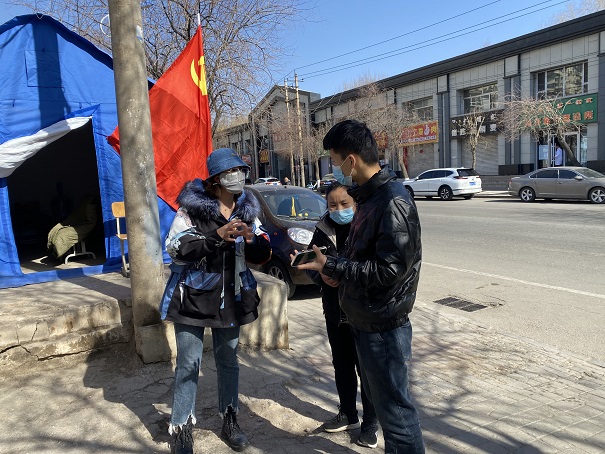 "咱們單位的男同志都挺無(wú)私的,晚上的班都是他們來(lái)值守,接我班的新華東分公司的郭海東每次都會(huì )提前來(lái)一會(huì )兒,他總是跟我說(shuō)"姑娘你家孩子小,早點(diǎn)兒回吧",這讓我覺(jué)得特別溫暖,這些日子雖然辛苦,但也讓我體驗到了互相關(guān)愛(ài)的真情,收獲了滿(mǎn)滿(mǎn)的感動(dòng)。2月27日,有個(gè)大姐給弟弟往這個(gè)小區搬家,我給她搭了把手,幫她一起搬了些東西,沒(méi)想到大姐忙完后拿著(zhù)香腸、辣條等一大袋子的小吃要給我,盡管我婉拒了她的好意,但留在心中的卻是甜蜜的記憶。公司領(lǐng)導十分關(guān)心我們抗疫小分隊的工作、生活,多次前來(lái)看望慰問(wèn),給我們送來(lái)電暖氣、桌椅、暖手寶、電燒水壺等物資,還安排電工給我們帳篷里接上了電源,讓我們值守期間不再受凍。前幾天有個(gè)86歲的老奶奶去買(mǎi)藥不會(huì )用智能手機出示健康碼向我求助,我幫助奶奶弄好并教她如何操作,奶奶買(mǎi)完藥專(zhuān)門(mén)來(lái)找我,說(shuō)了許多感謝的話(huà)"王向峰激動(dòng)給筆者講述了一串感人的故事。