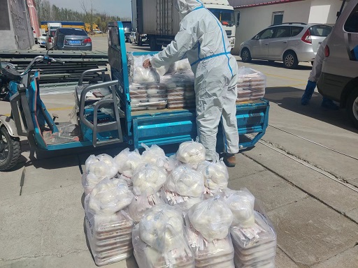 還未喘息,園區又接到供電部門(mén)通知,惱包園區高壓干線(xiàn)因故障維修,于21日下午14:00-18:00停電,為保障封控人員正常就餐需求,園區緊急調配移動(dòng)柴油發(fā)電機為園區餐廳提供電力保障,園區后勤保障組工作人員順利完成當日各封控區域集中隔離人員當日三餐共2265份的配送工作。
