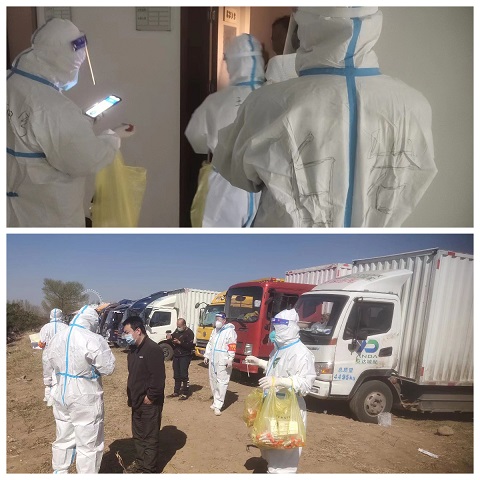 4月18日早7點(diǎn),城發(fā)物業(yè)公司抽調郝曉東、白巖、烏力更三位同志前來(lái)支援惱包物流園區防疫工作,他們的抗疫工作任務(wù)是惱包園區內北側露天停車(chē)場(chǎng)貨運車(chē)輛管控,負責對57輛貨運車(chē)輛及71位司機進(jìn)行防疫管控,登記排查車(chē)輛信息、餐食發(fā)送、體溫監測、人員管控。疫情防控期間,他們不畏艱辛、勇于向前,開(kāi)展核酸檢測工作490余次、體溫檢測210余次、共計發(fā)放餐食350余人次。在21日完成停車(chē)場(chǎng)人員分流管控工作后,22日接到新的防疫工作指令,隨即又沖向一線(xiàn),開(kāi)展3棟信息樓共300余人體溫監測、日常信息報送等防疫工作,24日順利完成所有的防疫工作。