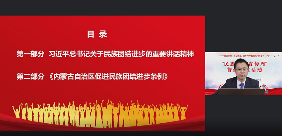 本次培訓以良法善治,凝心聚力,鑄牢中華民族共同體意識為主題,中國政法大學(xué)劉東剛博士圍繞習近平總書(shū)記關(guān)于民族團結進(jìn)步的重要講話(huà)指示精神、《中國共產(chǎn)黨統一戰線(xiàn)工作條例》《內蒙古自治區促進(jìn)民族團結進(jìn)步條例》《中華人民共和國國家通用語(yǔ)言文字法》《內蒙古自治區實(shí)施〈中華人民共和國國家通用語(yǔ)言文字法〉辦法》《民族區域自治法》《城市民族工作條例》的重點(diǎn)亮點(diǎn)內容進(jìn)行了解讀。