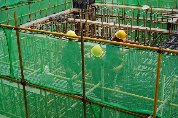 負責該工程的工作人員賈玉龍介紹,工程今年3月20復工,現輸煤棧橋、渣廊渣庫主體部分已封頂,現風(fēng)機間框架結構部分正熱火朝天的施工,工人們加班加點(diǎn)的推進(jìn)施工進(jìn)度,預計5月15日主體封頂。
