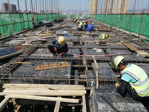 施工現場(chǎng),工人們頭頂似火驕陽(yáng),腳踩蒸騰的混凝土砌塊,不畏鋼筋混凝土作業(yè)面的熱浪,仍在熱火朝天地施工。他們揮動(dòng)著(zhù)鐵鍬、綁扎著(zhù)鋼筋、砌筑著(zhù)磚塊。曬得黑紅的臉頰,有的都脫了皮;摘下口罩,汗珠滴到混凝土砌塊上,瞬間蒸發(fā);脫下衣服,都泵擰出水來(lái)。但他們用實(shí)際行動(dòng)保障工期進(jìn)度。