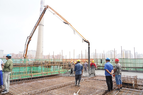 在三合村熱源廠(chǎng)廠(chǎng)區,機器轟鳴,一臺大型吊車(chē)正在吊裝混凝土,幾十名工人們正揮汗如雨地進(jìn)行耐火磚砌筑、鋼筋切割、地基澆筑,工地上一派熱火朝天的施工景象,各項工序井然有序進(jìn)行中。