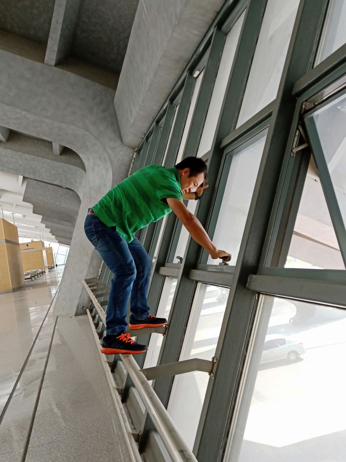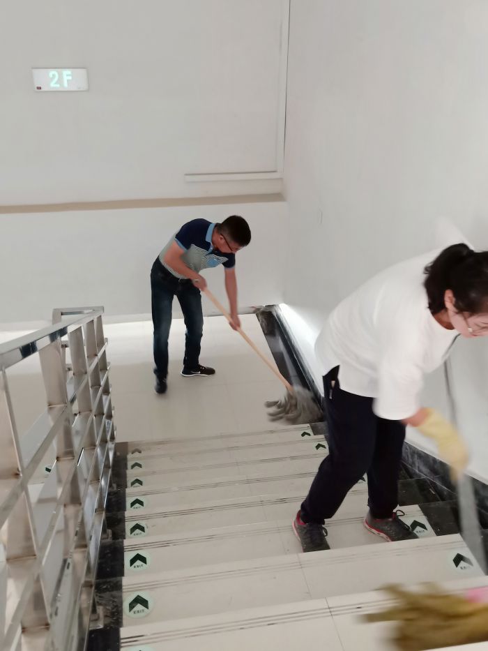 主站樓部分是攻堅之戰,30位員工在透明的頂棚下感受悶熱灼曬、揮汗如雨,每一塊地磚都是經(jīng)過(guò)了水沖、塵推、除塵、清洗、抹凈、擦干等六道工序,方可達標。上下兩層共26912平方米,經(jīng)過(guò)兩天半的時(shí)間終于完工,看著(zhù)光亮如新、纖塵不染的候車(chē)廳,所有員工的臉上都綻放了發(fā)自?xún)刃牡奈⑿Α?/span>