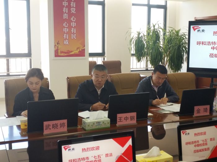 為了全面了解 "七五"普法工作開(kāi)展情況,推進(jìn)"七五"普法工作縱深發(fā)展,9月29日上午,呼市依法治市領(lǐng)導小組、市司法局、七五普法中期督查組一行深入城發(fā)集團對普法工作進(jìn)行督導檢查。城發(fā)集團黨委副書(shū)記張永、法務(wù)部及集團全體法務(wù)工作人員陪同參會(huì )。