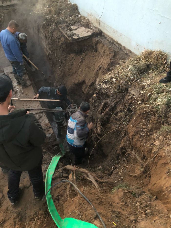 11月11日下午,中繼泵房專(zhuān)項高壓電閃落,1#、2#、3#循環(huán)泵因自動(dòng)保護驟停。出現異常后,調度立即通知京能電廠(chǎng)降頻,檢修車(chē)間立即組織人員進(jìn)行巡線(xiàn),經(jīng)過(guò)15個(gè)小時(shí)不間斷排查,12日上午,發(fā)現如意舊網(wǎng)主線(xiàn)和1#站支線(xiàn)漏水嚴重。分公司檢修車(chē)間、運營(yíng)二所和保駕護航單位迅速制定搶修方案組織搶修,經(jīng)理丁成斌、副經(jīng)理鄭紅飛親自到現場(chǎng)指導搶修工作。為準確找到失水點(diǎn),搶修人員穿著(zhù)隔熱服進(jìn)入管溝內查找漏點(diǎn)。由于漏水點(diǎn)管線(xiàn)錯綜復雜,施工難度非常大。接近管道時(shí),發(fā)現漏點(diǎn)位置靠近井壁且管道腐蝕嚴重,壁厚較薄,采取整理外層補焊的方式進(jìn)行修補。