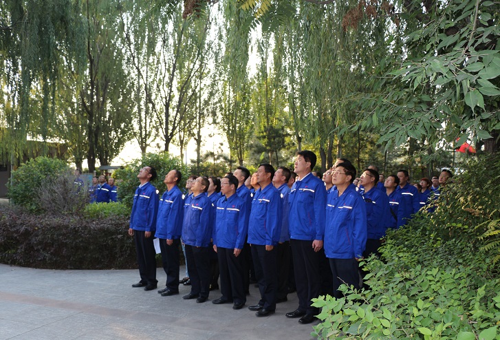 9月30日上午,城發(fā)公司組織公司領(lǐng)導班子全體成員、分(子)公司黨政負責人、機關(guān)各部室負責人及30多名一線(xiàn)職工在辛家營(yíng)供熱分公司開(kāi)展“升國旗、唱國歌”活動(dòng)。