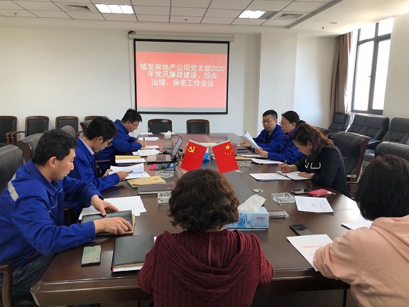 4月23日,房地產(chǎn)公司黨支部在城發(fā)集團11樓會(huì )議室組織召開(kāi)黨風(fēng)廉政建設、綜合治理、保密工作會(huì )議,公司全體黨員干部10人參加了會(huì )議。