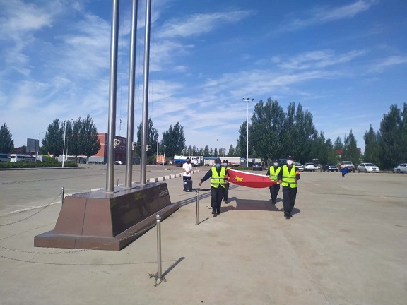 城發(fā)物流惱包園區全體職工舉行迎“七一”升國旗儀式