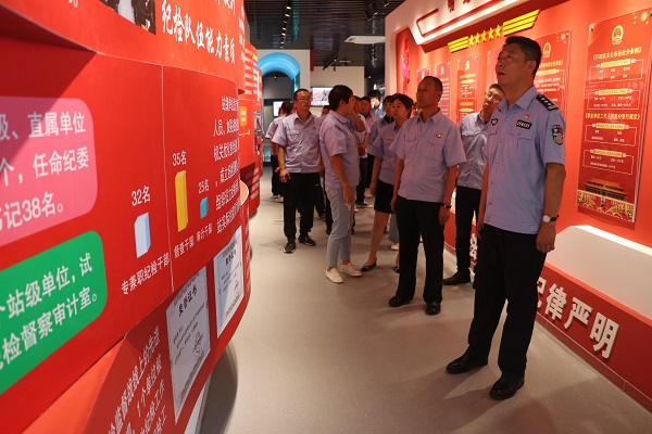 活動(dòng)中,大家依次參觀(guān)了邊防檢查總站廉政教育長(cháng)廊和展廳,集體觀(guān)看了自十八大以來(lái),以習近平為核心的黨中央從嚴治黨和防腐治腐的宣傳教育片。全面回顧了中國共產(chǎn)黨的反腐歷程,學(xué)習了發(fā)生在我們身邊讓人觸目驚心的一個(gè)個(gè)反面案例。尤其展廳最后通過(guò)的“萬(wàn)丈深淵路”,讓每個(gè)走在上面的黨員干部都身臨其境地感到貪腐之后家庭、事業(yè)、人生統統地崩山裂、萬(wàn)念俱灰的感覺(jué),再次起到了敲響警鐘、拒腐防變、正風(fēng)肅紀的作用。