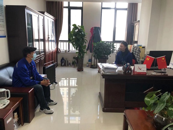 此次活動(dòng)主要訪(fǎng)談接待公司困難職工,了解他們在工作、生活及家庭方面存在的困難,征求意見(jiàn)建議,力所能及的幫助解決實(shí)際問(wèn)題。黨支部書(shū)記郭依群還接待了公司新入職的職工,和他們促膝而談,詳細介紹了公司的發(fā)展情況,鼓勵他們要發(fā)揚青年職工敢于爭先、吃苦耐勞的精神。同時(shí)郭依群同志還同積極入黨的同志進(jìn)行了談心談話(huà),了解其思想動(dòng)態(tài)和工作情況,并要求他們要加強學(xué)習、提高思想認識和政治覺(jué)悟,時(shí)刻以共產(chǎn)黨員的標準要求自己,爭取早日入黨。
