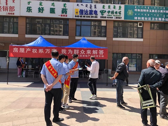 在祥和苑公租房小區社區服務(wù)中心,志愿者們向廣大群眾詳細的介紹了公租房購買(mǎi)條件和流程,以及辦理不動(dòng)產(chǎn)權證等政策知識,并為購房群眾現場(chǎng)發(fā)放了辦理不動(dòng)產(chǎn)權證的發(fā)票和網(wǎng)簽合同。同時(shí)大家還主動(dòng)前往小區人流較多的北門(mén),熱情的向廣大群眾發(fā)放了公司專(zhuān)門(mén)制作的公租房銷(xiāo)售和不動(dòng)產(chǎn)權證宣傳圖冊,耐心的為群眾解答購買(mǎi)公租房和辦理產(chǎn)權政策的各項疑慮、困惑。