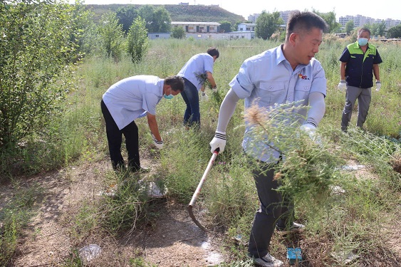 活動(dòng)現場(chǎng),黨支部書(shū)記娜仁、經(jīng)理史濤帶領(lǐng)大家在各自的責任區域內分片作業(yè)。大家在炎炎烈日下,揮汗如雨、干勁十足,有的拔除蒿草、有的收集清運……經(jīng)過(guò)一下午地辛勤作業(yè),小區及周邊的蒿草不見(jiàn)了,空氣清新了,環(huán)境也變美了。