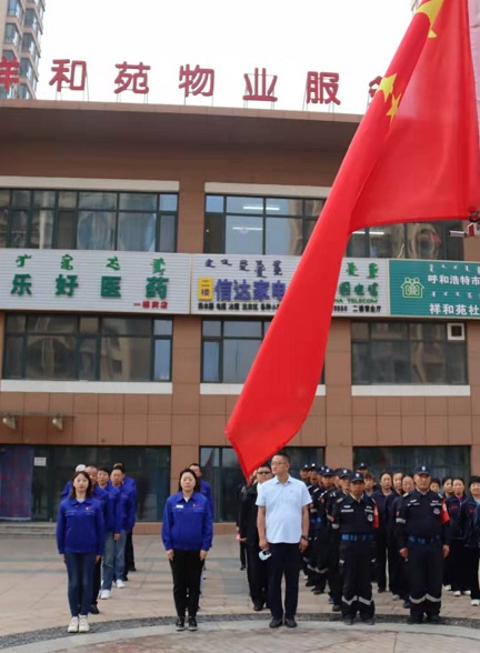 9月27日上午,城發(fā)物業(yè)公司黨支部聯(lián)合呼市住房保障和房屋管理局經(jīng)營(yíng)管理處祥和苑公租房管理站在祥和苑公租房小區舉行“我和我的祖國——升國旗、唱國歌”獻禮中華人民共和國成立72周年活動(dòng)。黨員、干部、職工共40余人參加此次活動(dòng)。