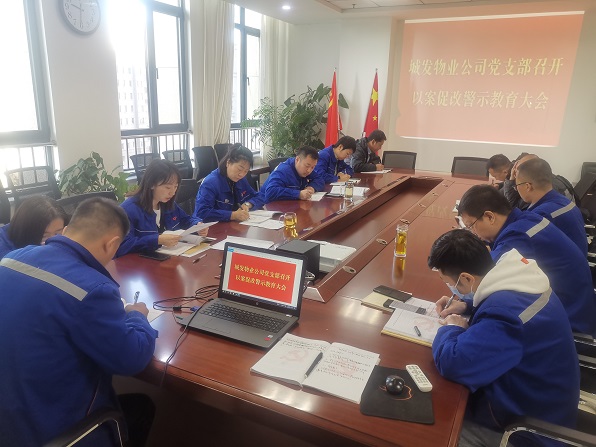 11月11日上午,城發(fā)物業(yè)公司黨支部組織黨員、干部、入黨積極分子,召開(kāi)了“以案促改”警示教育大會(huì )。